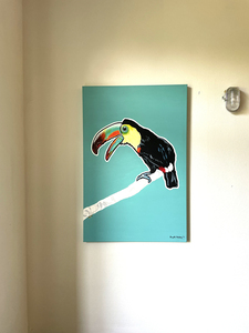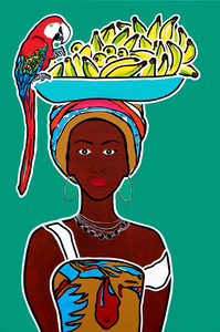 2017I started again with the 'bringing together' of people and animals in my paintings. The cape verdean women, who live on the island of 'Santiago' are very beautifull. They fo not like to be photographed and the carry baskets and trays full of fruit to the market. There are also birds who flew in from another continent. Therefore nothing is impossible. We'd like to similarly live in freedom, so... spread you're 'wings' and fly.